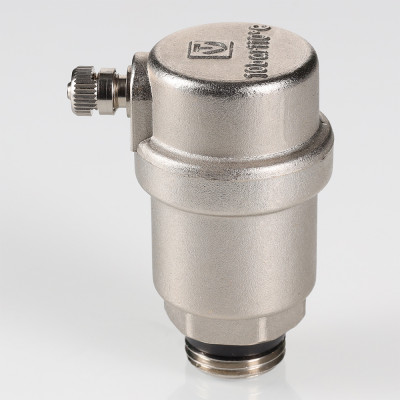 Модель воздухоотводчика VT.502.N.04 снабжена самоуплотняющимся патрубком для присоединения к трубопроводу или коллектору, что позволяет не применять дополнительный уплотнительный материал при монтаже. Воздухоотводчик совместим с сгоном-отсекателем VT.539.N.