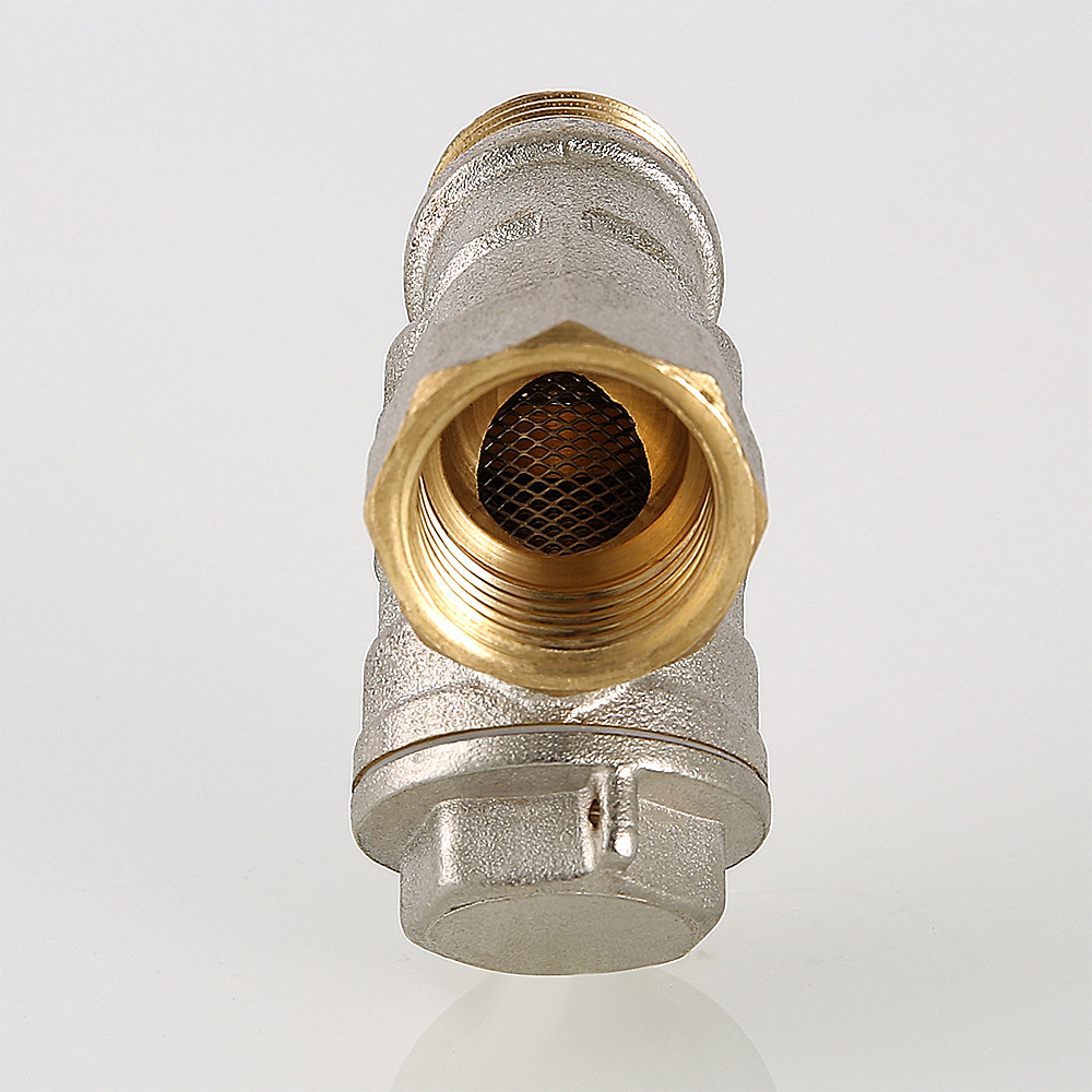 Фильтр механической очистки косого типа. Может устанавливаться в горизонтальном и вертикальном (движение потока – сверху–вниз) положении. Корпус и пробка изготовлены горячим прессованием из латуни марки CW617N (европейский стандарт EN 12165) и никелированы. Между ними предусмотрена тефлоновая уплотнительная прокладка. Пробка оснащена отверстием для пломбировки. Размер ячеек сетки фильтрующего элемента – 500 мкм, максимальное рабочее давление – 20 бар. Максимальная рабочая температура фильтруемой среды – 150 °C. Условный диаметр – 1/2". Резьба присоединения – внутренняя/наружная.