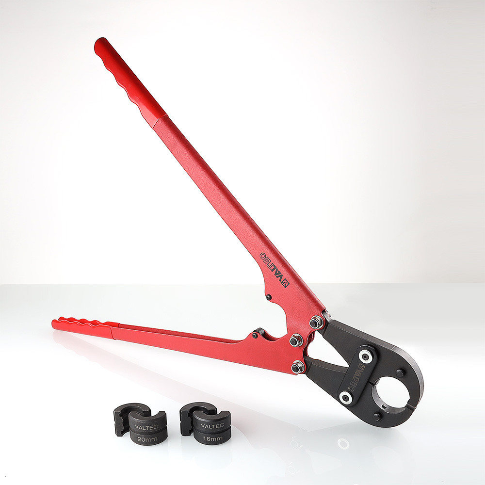 Малогабаритные пресс-клещи VALTEC обеспечивают ручное обжатие фитингов при монтаже металлополимерных, пластиковых труб диаметром 16, 20 мм. Профиль используемых насадок – ТН. Отсутствие телескопических рукояток требует больших усилий (расчетное значение – 150 Н), чем при работе со стандартным пресс-инструментом. Усилие обжатия гильзы – 10,5 кН. Средний полный ресурс – 5000, наработка на отказ – 2500 циклов. Масса пресс-клещей без насадок – 2,49 кг. Рукоятки инструмента оснащены ПВХ-покрытием. Осевые эксцентрики позволяют производить настройку клещей при появлении избыточных люфтов.| Артикул | Размер | Цена за штуку |