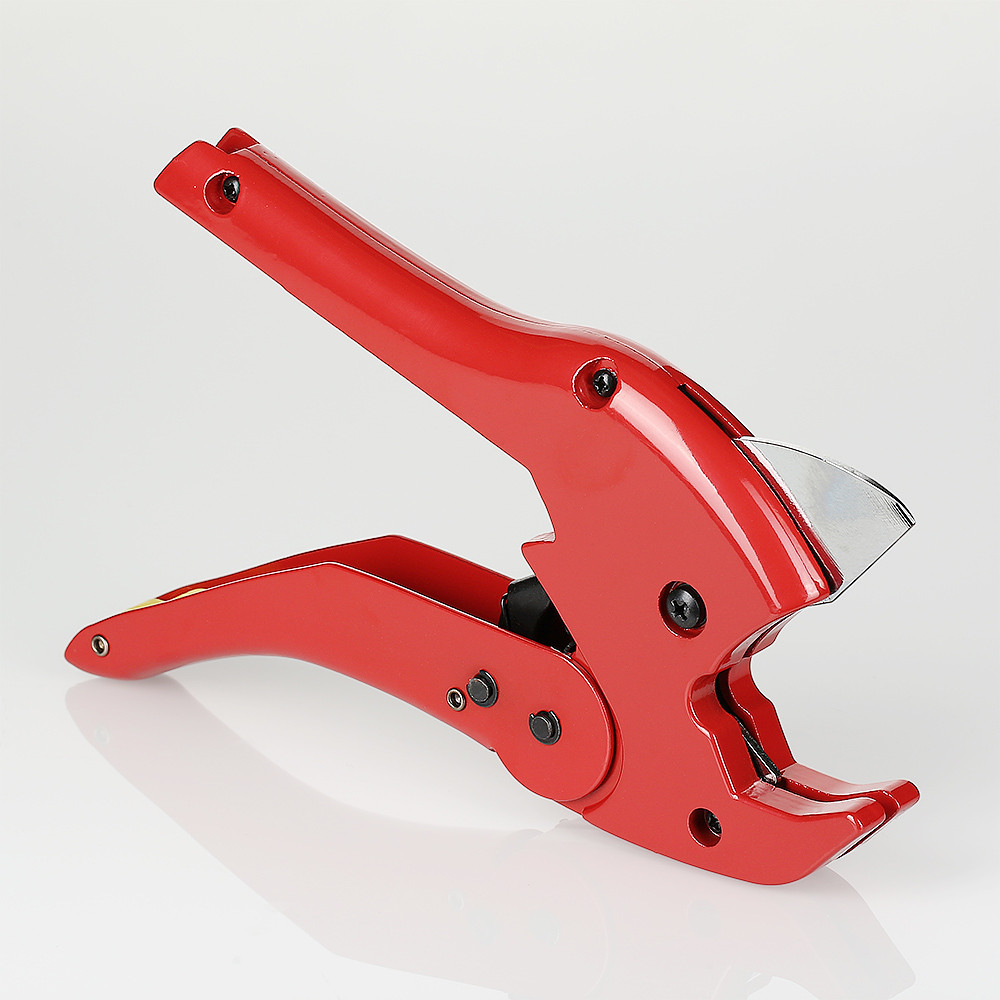 Ножницы с храповым механизмом для металлополимерных и пластиковых труб (до 40 мм). Обеспечивают разрезание под прямым углом труб указанного диаметра. Конструкция инструмента включает в себя нож из нержавеющей стали, храповой механизм, подпружиненную защелку, фиксирующую ножницы в закрытом положении. Внутри рукоятки расположена пружина, поднимающая нож.| Артикул | Размер | Цена за штуку |