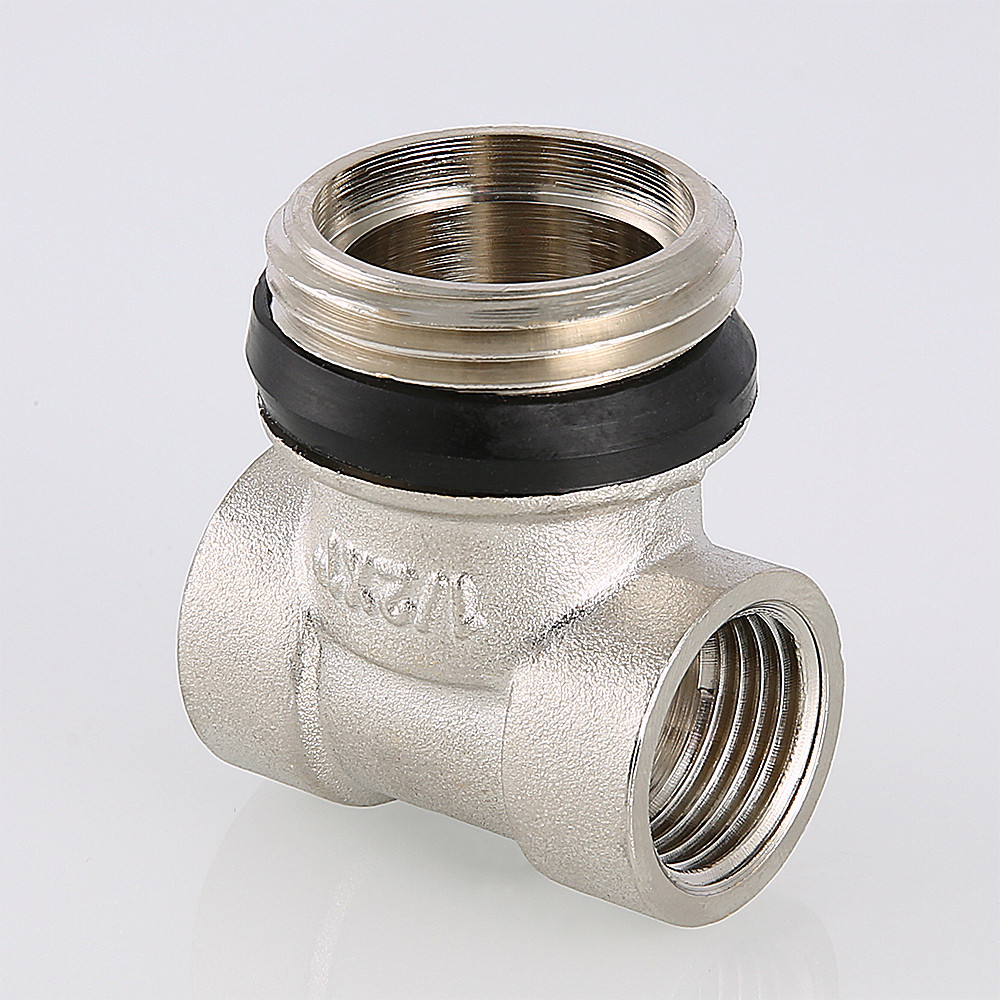 Данный тройник обеспечивает присоединение к распределительному коллектору воздухоотводчика и дренажного крана или других элементов – термометра, манометра, выносного датчика термостата, соединительной трубки и т.д. Изготовлен из качественной сантехнической латуни марки CW617N (европейский стандарт ЕN 12165). Материал уплотнительного кольца – синтетический каучук EPDM. Неиспользуемое отверстие закрывается резьбовой пробкой. Рабочая температура – до 110 °С, давление – до 16 бар. Применяется в коллекторных узлах водяного теплого пола.