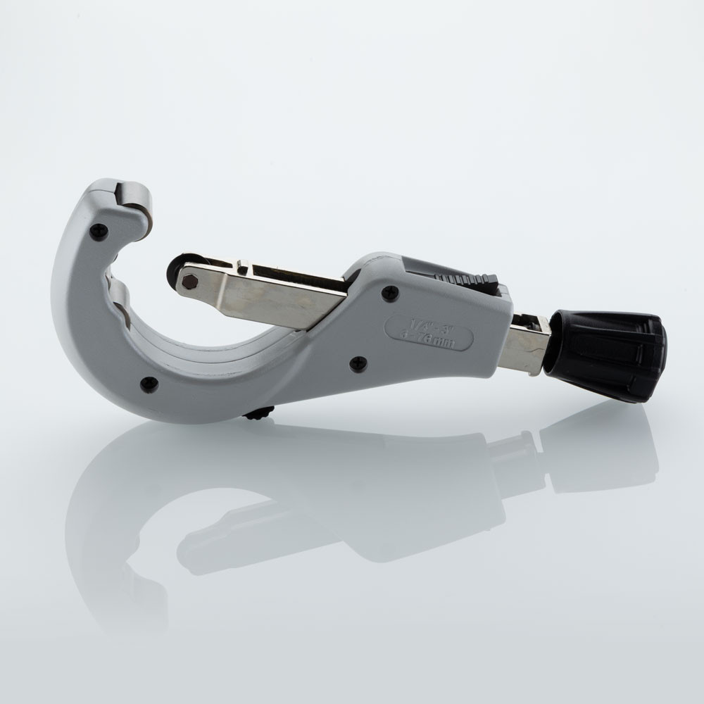 Труборез для труб из нержавеющей стали и медных труб диаметром 6–76 мм. Труборез имеет быструю подачу/отвод режущего ролика, оснащен четырьмя широкими опорными роликами для комфортной работы. Игольчатые подшипники в режущем и опорном ролике обеспечивают лёгкий ход при резе.