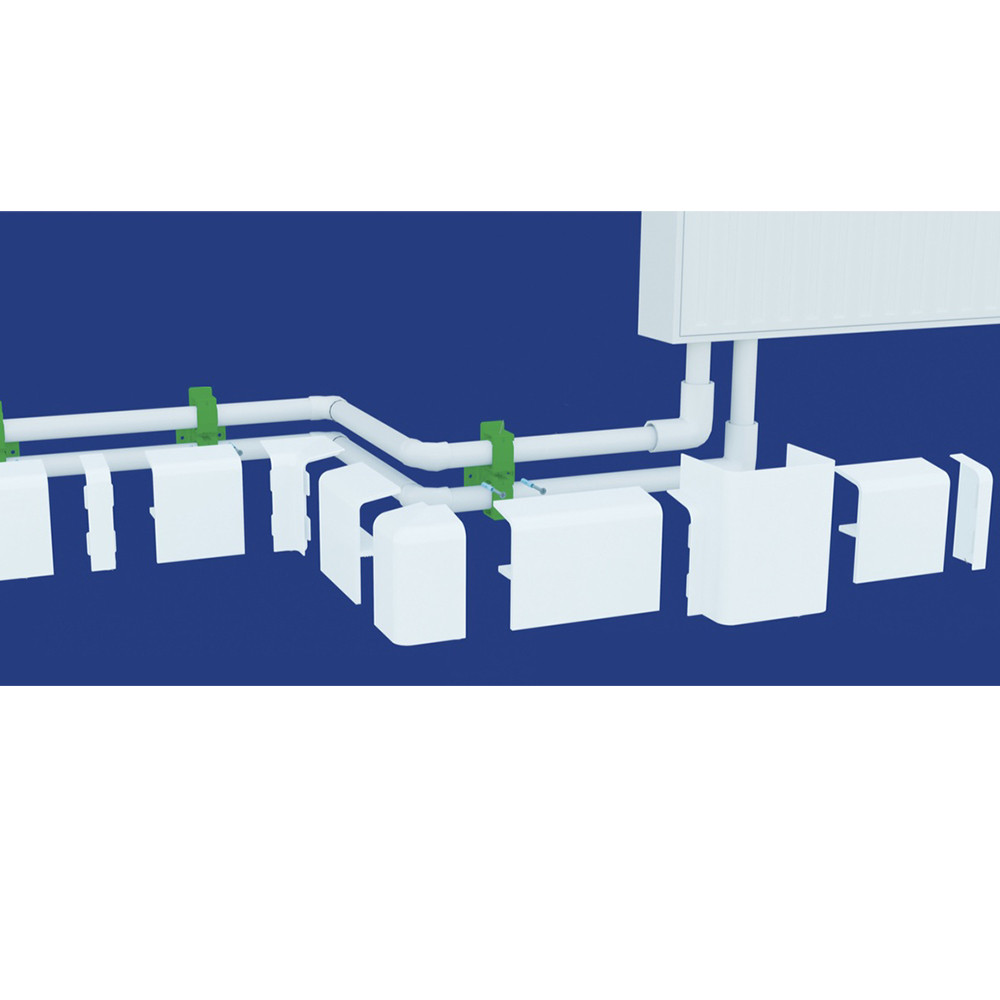 Пластиковый короб системы AQUA позволяет скрыть трубы отопления диаметром до 20 мм, идущие от радиатора. Элемент соединяется с плинтусом AQUA 37, образуя единую систему и минимизируя монтажные работы. Короб выполнен в белом цвете.