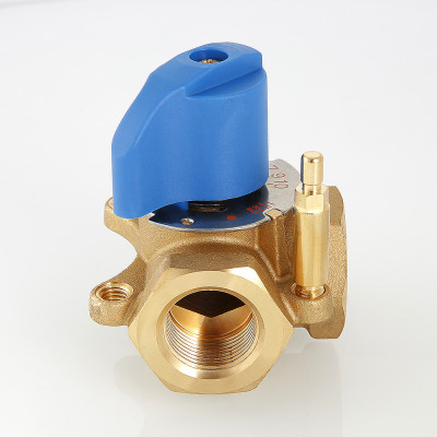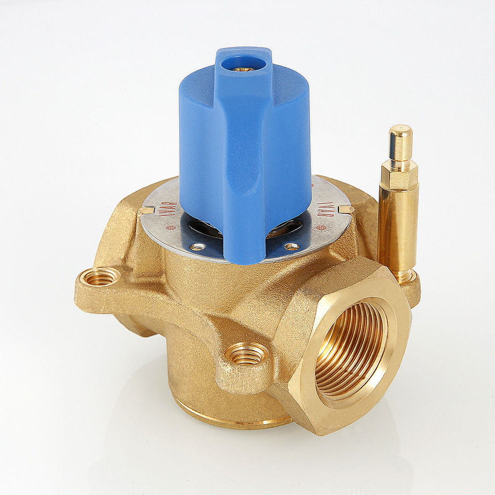 Предназначен для использования в смесительных и разделительных узлах гидравлических систем. Управление клапаном может осуществляться вручную или с помощью сервопривода с крутящим моментом не менее 5 Н•м (рекомендуется модель VT.M.106). Корпус и регулирующий элемент выполнены из латуни, что исключает возможность появления коррозионных отложений в рабочих зазорах. Уплотнение штока достигается с помощью двух колец из синтетического каучука EPDM PEROX. При этом верхнее кольцо легко заменить без полной разборки изделия. Клапан ремонтопригоден и состоит всего из четырех основных деталей, что повышает его надежность. Максимальная рабочая температура теплоносителя – 120 °C, нормативное давление – 10 бар. Резьба присоединений – внутренняя. Условные диаметры предлагаемых моделей – 3/4, 1, 1 1/4". Ручка управления входит в комплект.