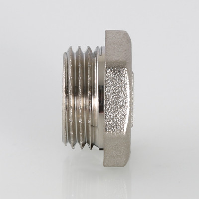 Латунная никелированная трубопроводная пробка с шестигранной головкой. Имеет наружную трубную цилиндрическую резьбу по ГОСТу 6357 (ISO 228, EN 10226).