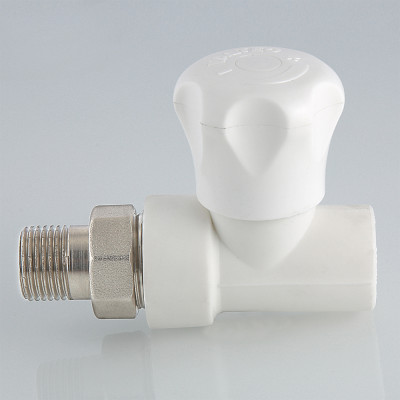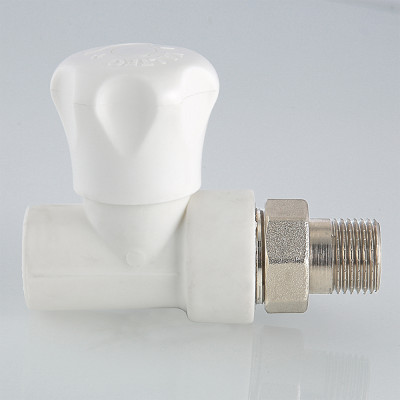 Клапан с полипропиленовым корпусом, прямой. Предназначен для ручной регулировки количества поступающего в отопительный прибор теплоносителя. Клапан позволяет полностью перекрывать поток. Подключение клапана к отопительному прибору производится с помощью закладной детали и полусгона, выполненных из латуни с никелевым покрытием. Монтаж полипропиленовой трубы производится раструбной сваркой. Кроме отопления полипропиленовый клапан VTp.717.V можно использовать в водоснабжении, включая питьевое, и технологических установках.
