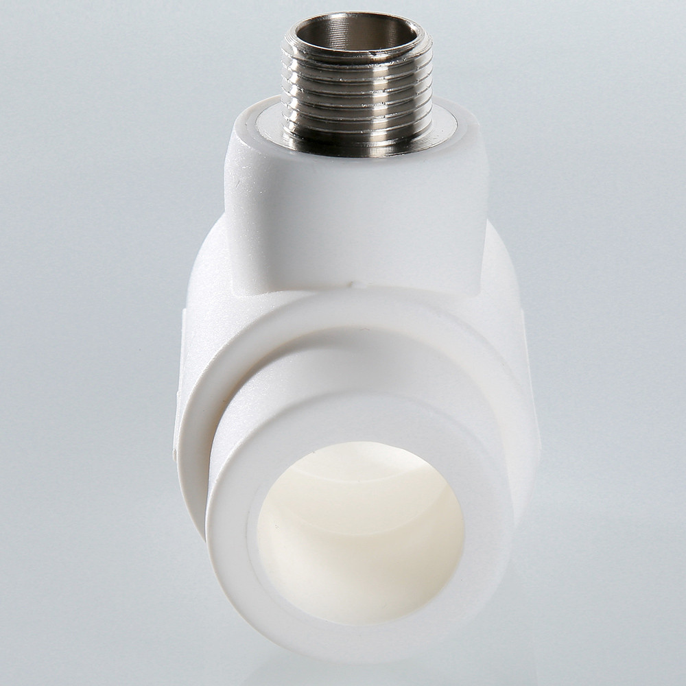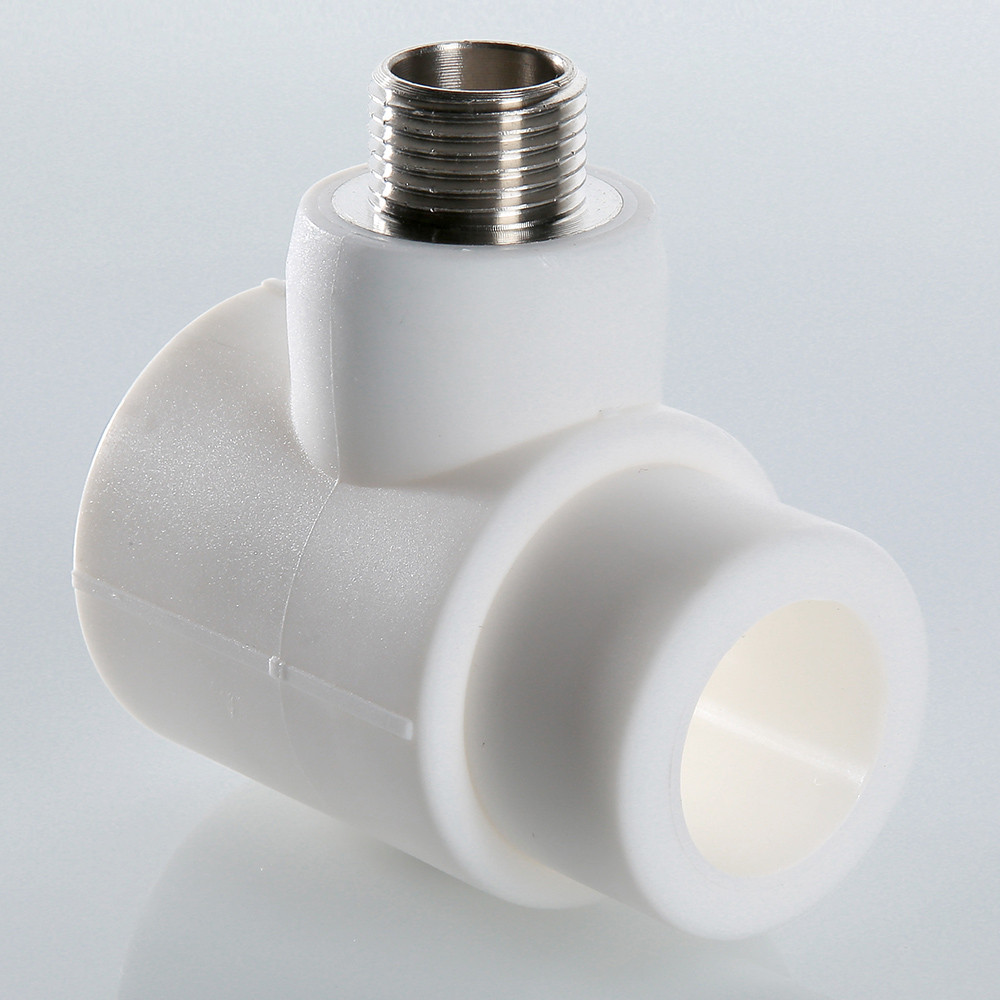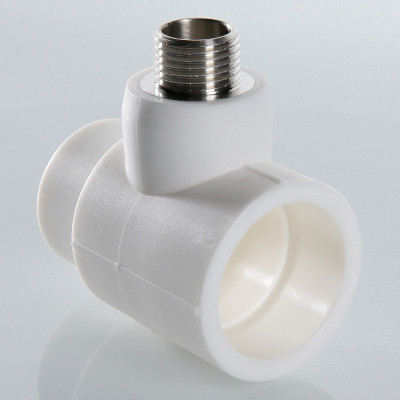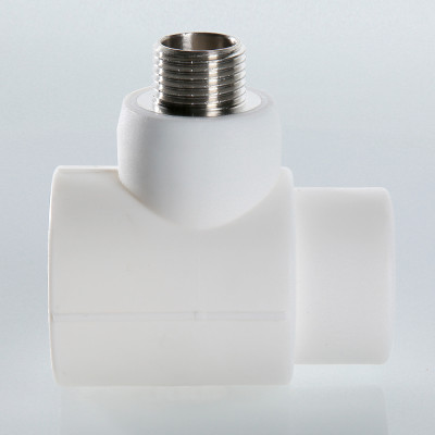 Тройник полипропиленовый коллекторный с наружной резьбой можно применить для изготовления коллекторов: сваривая фитинги друг с другом, монтажник получит распределитель потоков с необходимым числом выходов (межцентровое расстояние – 53–54 мм). Благодаря разборным соединениям использовать такое изделие бывает удобнее, чем готовый полипропиленовый коллектор с отводами под приварку PPR-труб. Корпус тройника выполнен из полипропилена PP-R 100, закладная резьбовая деталь – латунная (марка сплава – CW617N, способ изготовления – горячее штампование), никелированная. Диаметр патрубков под муфтовую сварку (внутренний/наружный) – 40 мм, резьбы – 1/2, 3/4".
