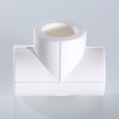 Трехсторонний равнопроходной фитинг для монтажа полипропиленовой трубопроводной системы методом раструбной сварки.