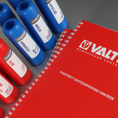 Использование сантехнических наклеек позволяет быстро понять всю логистику инженерных систем, что удобно и для монтажника, и для конечного пользователя.
