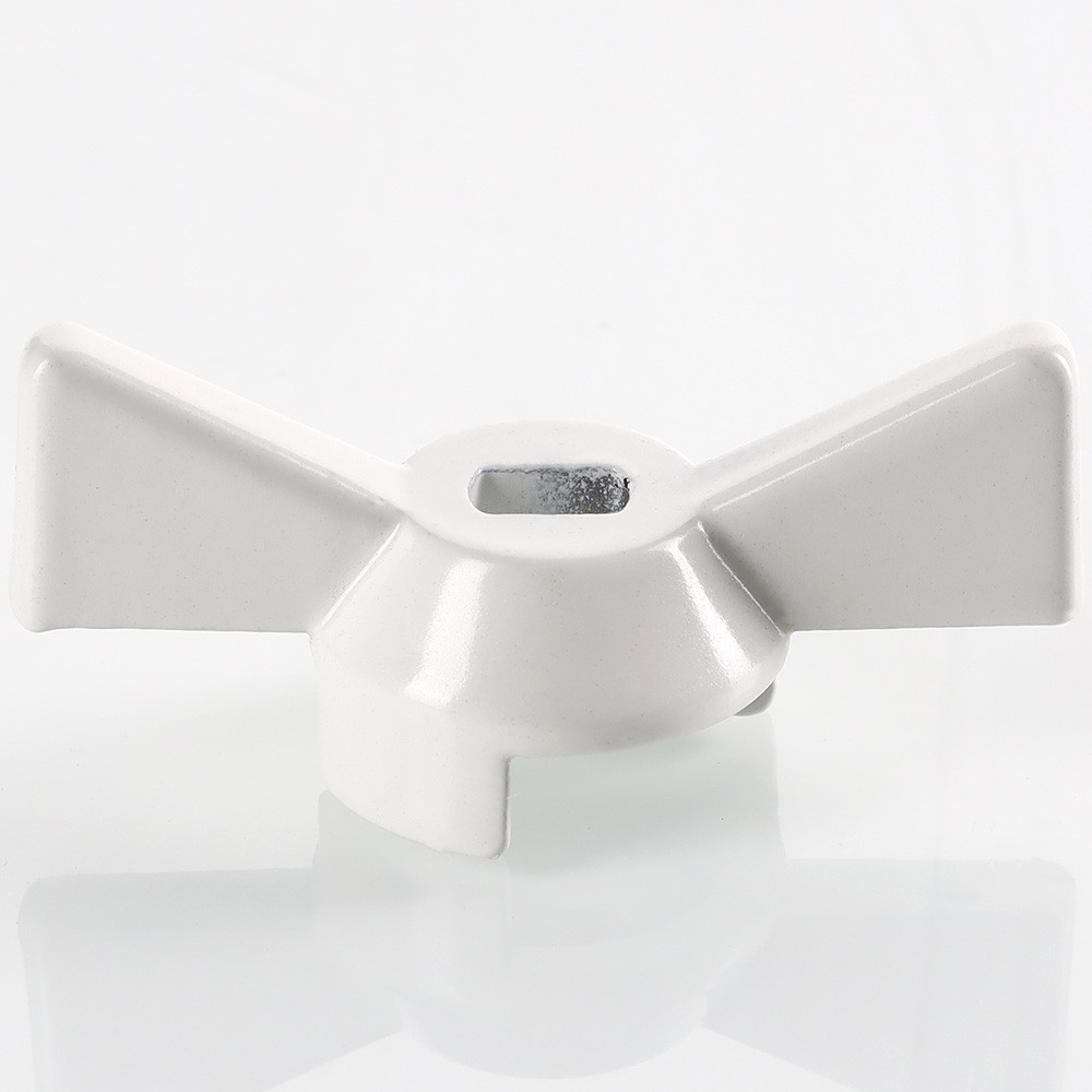 Ручка типа «бабочка» для шарового крана. Выполнена из алюминиевого сплава (силумин). Окрашена эпоксидной краской в белый цвет.