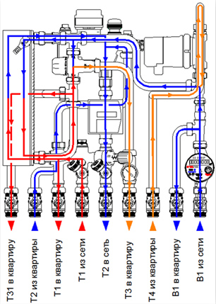 Рис. 11. Типовая схема тепло- и водоснабжения жилого здания