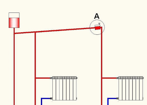 • расширительный бак можно врезать только над главным стояком;