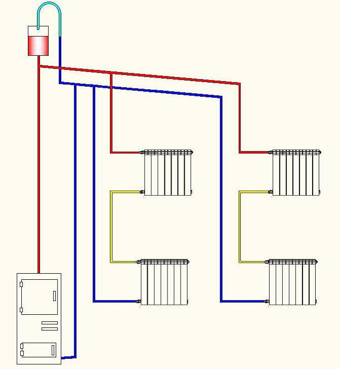 Рис. 2. Пример двухтрубной системы отопления с естественной циркуляцией