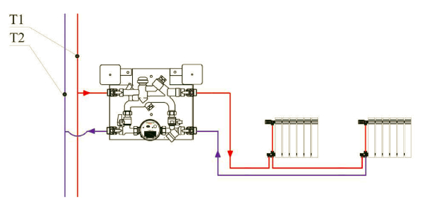 Внутриквартирный узел учета тепловой энергии предусматривает наличие в квартире прямого и обратного стояка системы водяного отопления. Те есть горизонтальные системы квартирного отопления подключаются к стоякам по двухтрубной схеме.