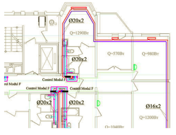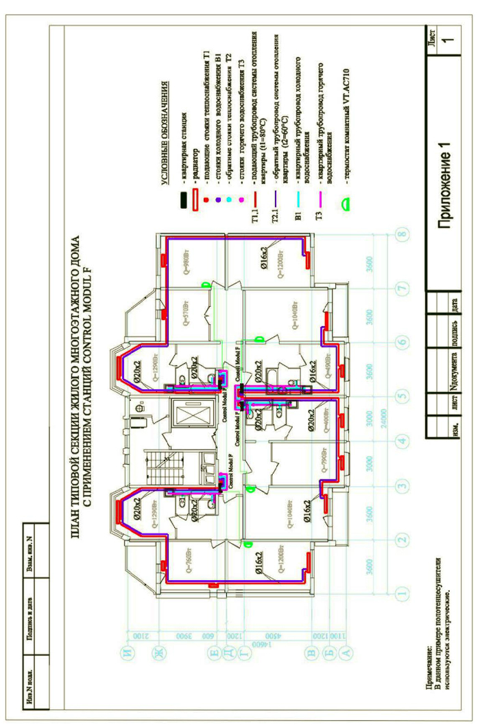 Рис. 22. Фрагмент проекта жилого дома с квартирными станциями IV CONTROL MODUL