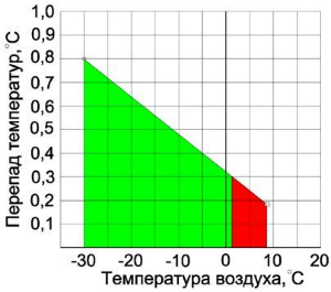 Рис. 3. График зависимости перепада температур от температуры наружного воздуха