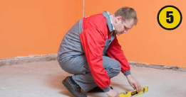 Далее необходимо подготовить пол — поверхность должна быть строго горизонтальной, без каких-либо неровностей (5).