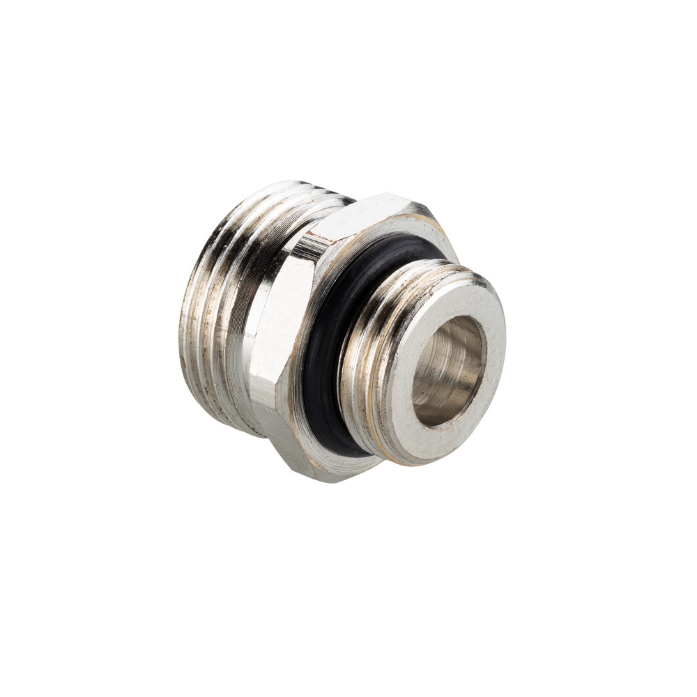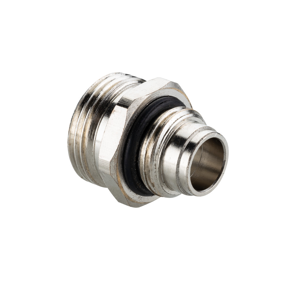 Латунный никелированный ниппель, предназначенный для применения совместно с расходомером VT.AC674.Z.0 на коллекторных блоках VTc.579. Ниппель обеспечивает переход с трубной цилиндрической резьбы...